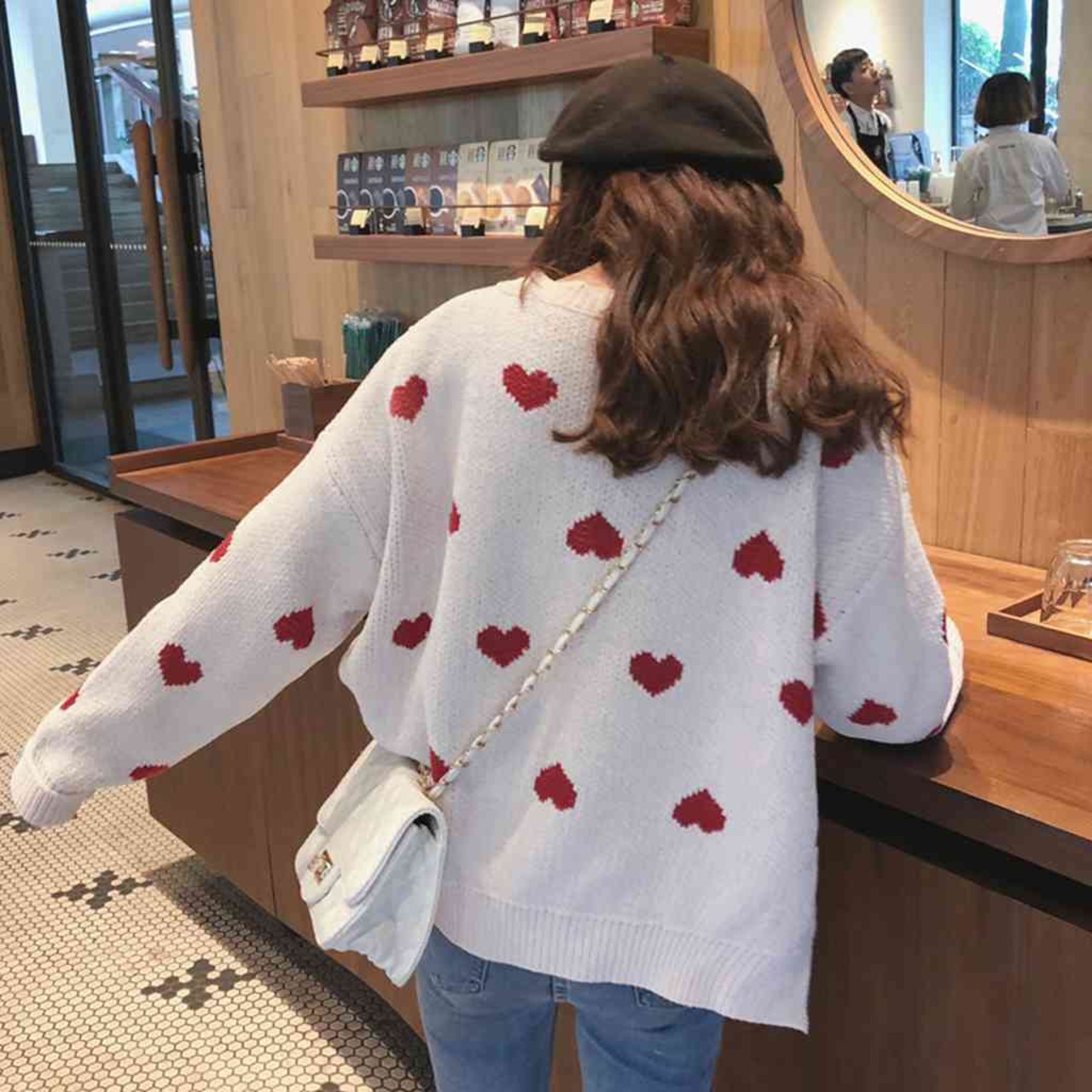 ラウンドネックハート柄ニット